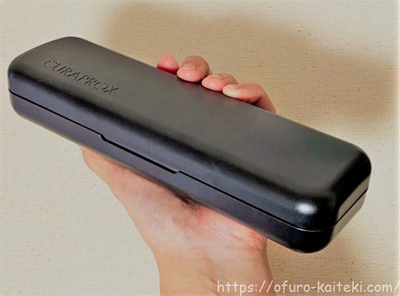 ブラックカラーのスタイリッシュなデザインで、携帯用のトラベルケースが付いているので持ち運びに便利です。