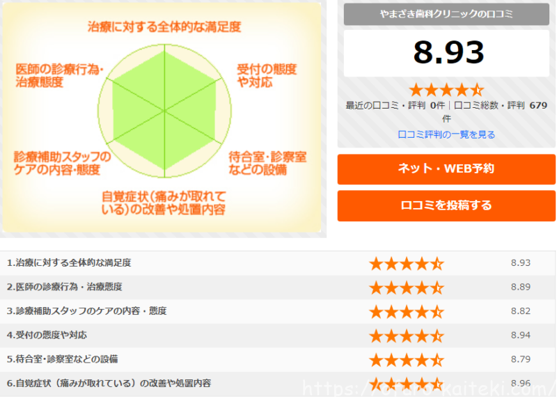 このような形で歯科医院ごとの口コミ評価が閲覧できます。
