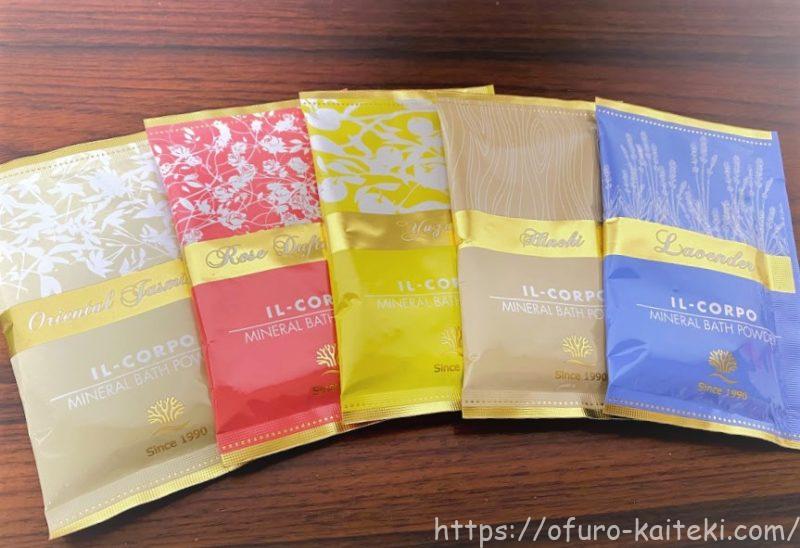『ミネラルバスパウダー アロマコレクション アソート5包セット』という5種類を試せるトライアルセットを自宅のお風呂で使ってみました。